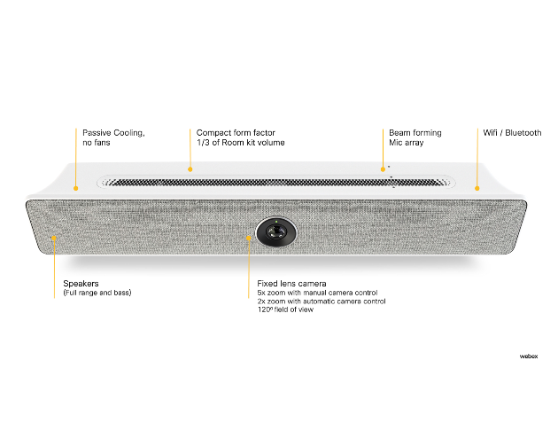 Cisco Webex Room USB 具有4K 超高清攝影鏡頭,自動調整影像亮度及白平衡,以實現最大的清晰度。包含人工智能技術,具有智能化構圖及會議分析的功能,可通過自動偵測會議參與者並將影像清晰化。